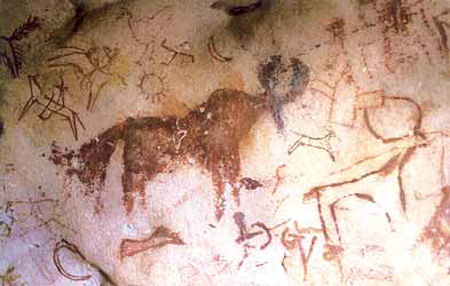 Die ersten Felsmalereien die das Yak zeigen, wurden vor 3000 Jahren, vor allem in Nord- und Westtibet, gemacht. Das Yak erscheint deshalb so häufig, weil er bereits damals ein wichtiger Bestandteil im Leben der Tibeter war.